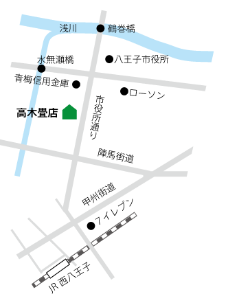 ご注文 ご相談(料金・時間・手間…) わかりやすく 迅速丁寧にお答えします あなたの「畳のある生活」を 専門家として力を尽くして応援します メールアドレス ▶ takagitatamiten123@gmail.com 電話 ▶ 042-622-8971 受付時間 あさ8時〜よる8時 ● 年中無休